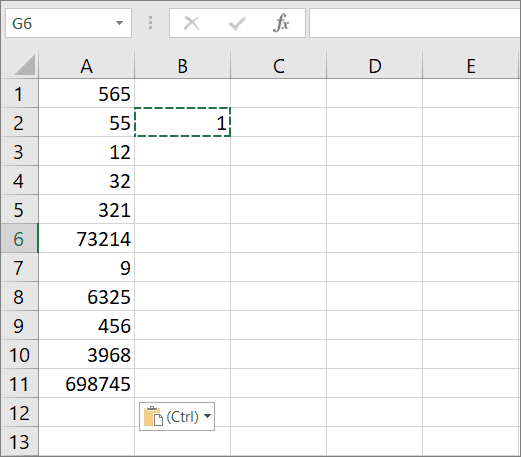 Type ‘1’ numeric value in a cell (lets say in B2) and copy that value.