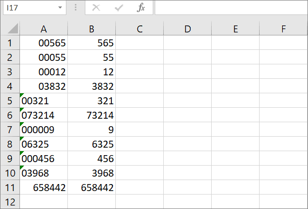 Now, you have learned how to add leading zeros in Excel, let’s see how to remove the leading zeros from the number of strings. Sometimes, when you import data from an external source, numbers may end up having prefix zeros and being formatted as text. In such cases, you need to remove the leading zeros and convert them back to numbers, so you can use them in formulas.