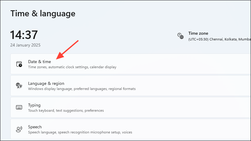 Win + Ishortcut and click on 'Time and Language' on the left.