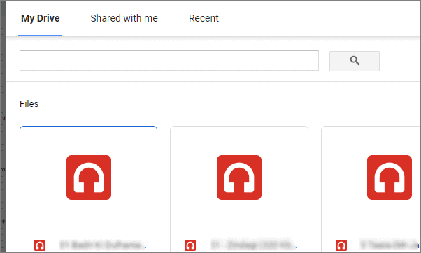 The Google Drive linked to the account that you are using to access Google Slides will open. All compatible audio files will be displayed here. To make the search easier, you can select either of the three options from the top, My Drive, Shared with me, or Recent.
