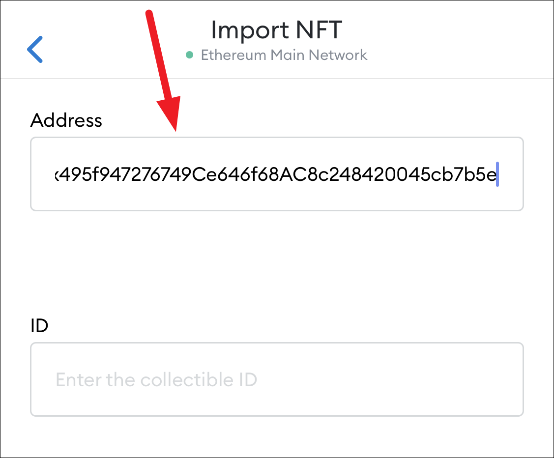 Then, paste the address in the ‘Address’ textbox in your mobile app in the Import NFT screen.