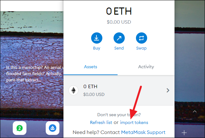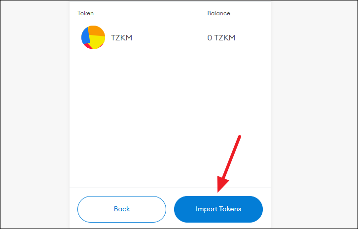Click the ‘Import tokens’ option from the bottom of the screen.
