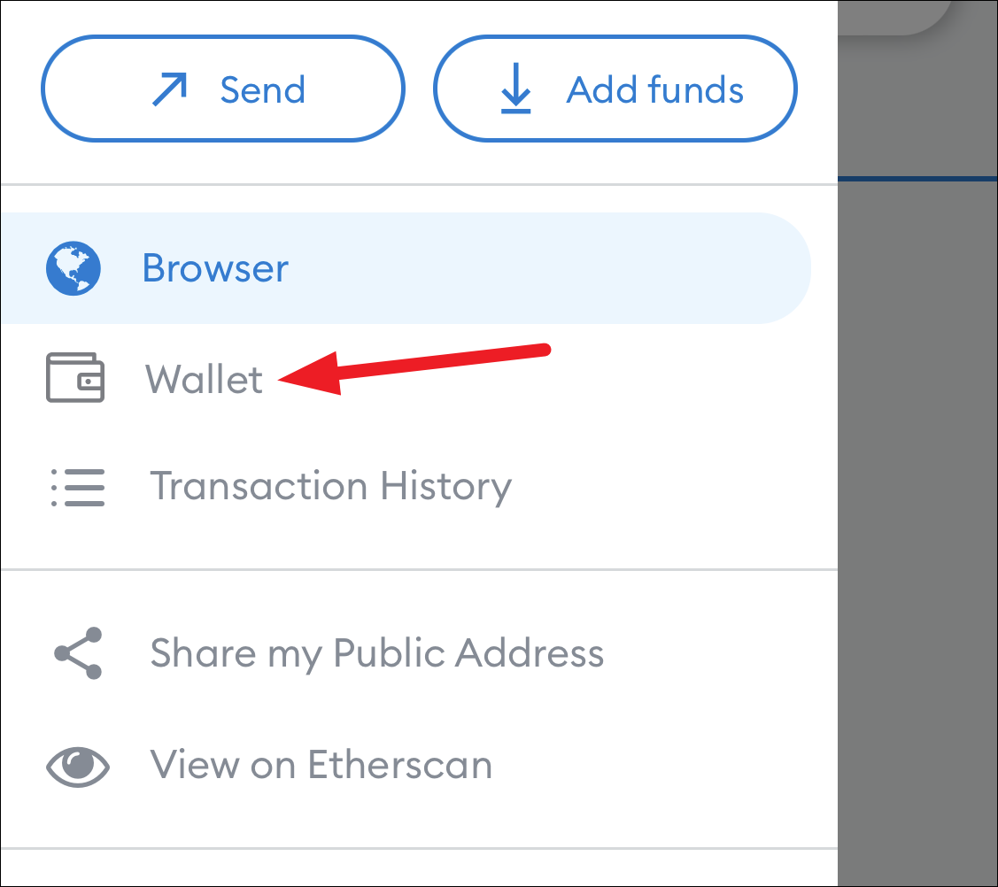 Then, tap ‘Wallet’ from the menu.