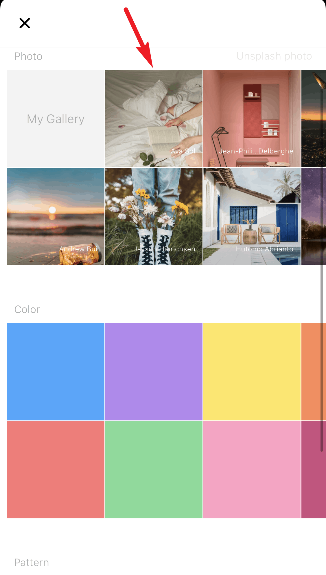 You can select a photo from your album, choose one of the backgrounds given in the app, or select a photo from Unsplash. There are also some options for solid color or patterns in the app that you can choose.
