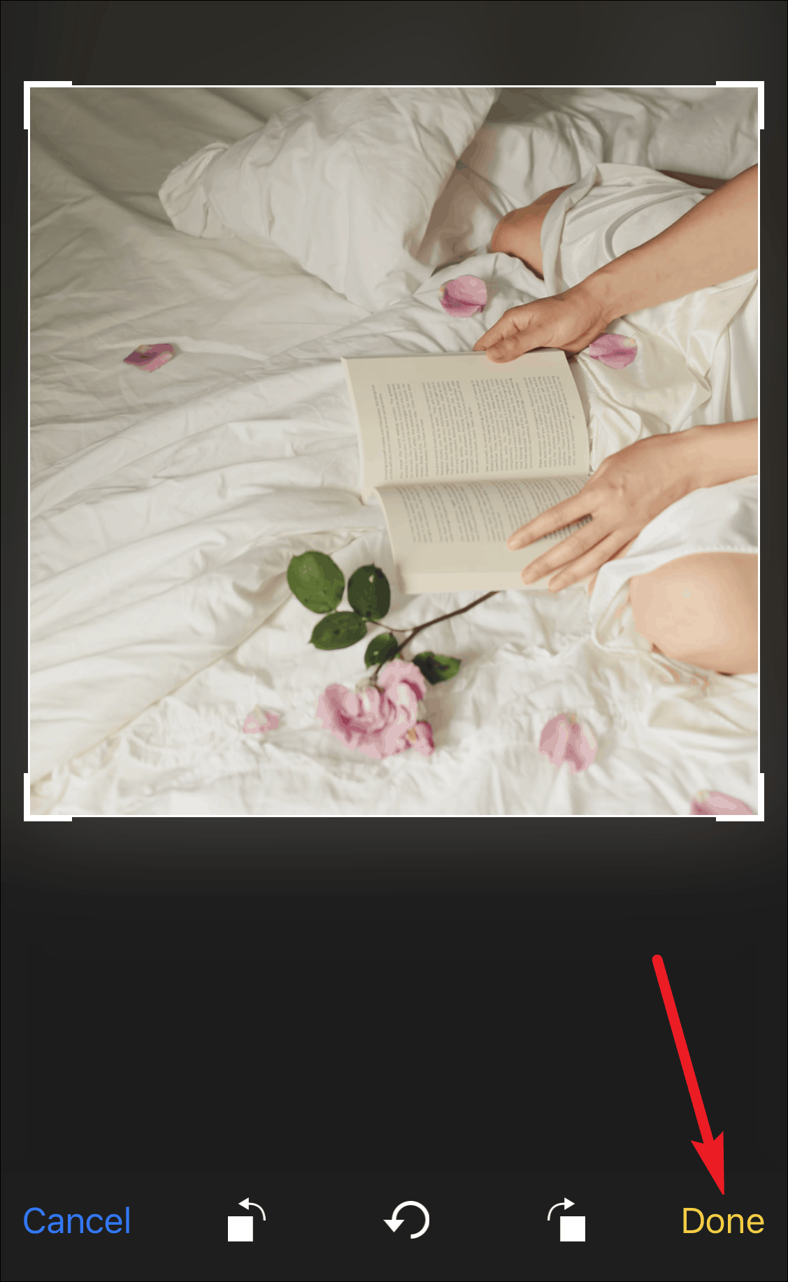 Tap on the photo you want to use as background. An editor screen will open where you can adjust the part of the photo you wish to use in the square. Tap ‘Done’ after you are satisfied with it.