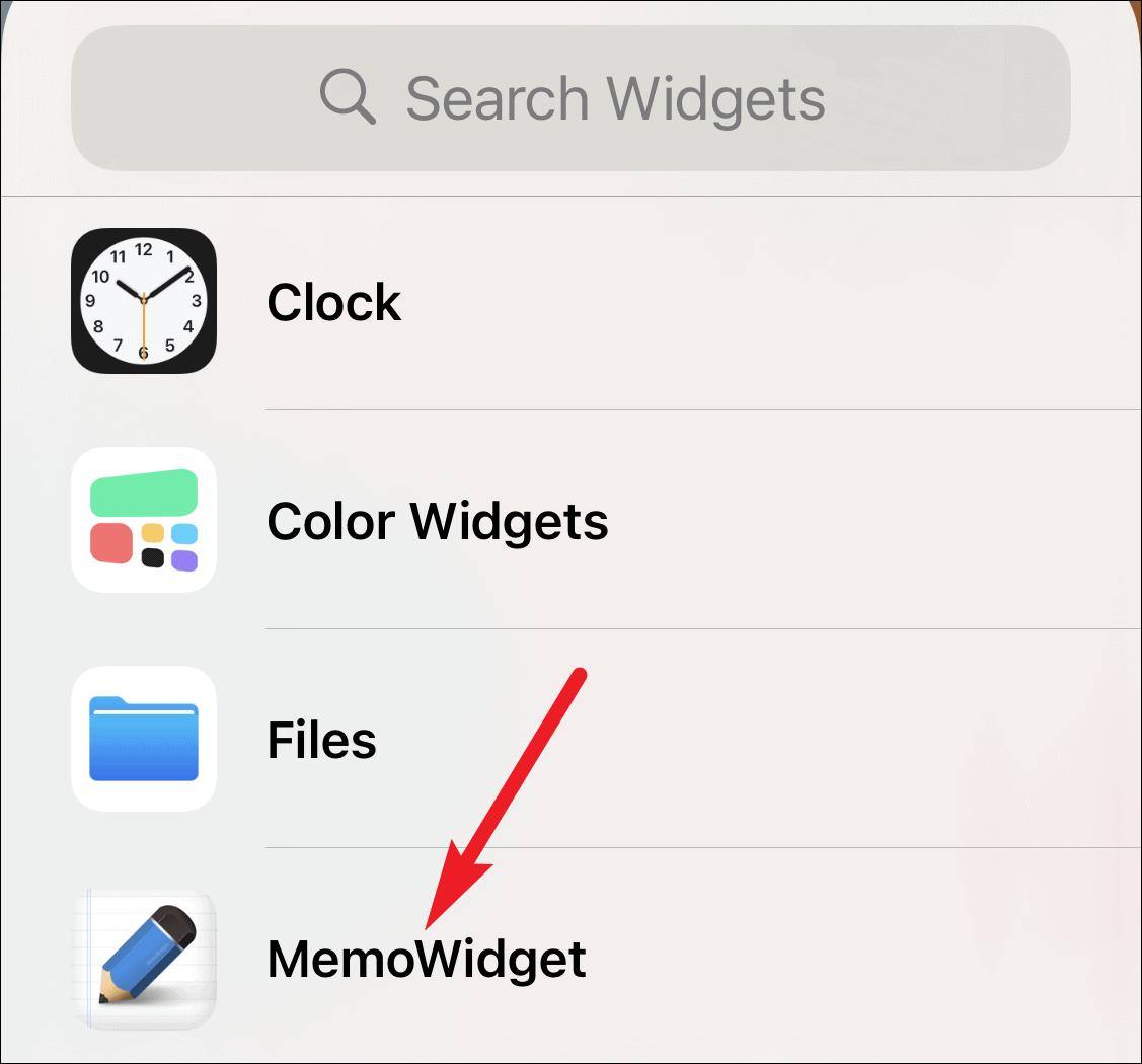 Widget gallery will open. Find and tap the option for ‘Widgetmemo’ in the gallery.
