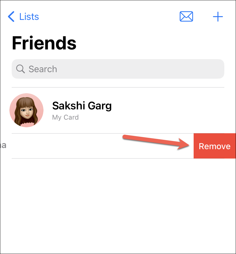 To remove a contact from the list, swipe left on the contact and tap the ‘Remove’ option that appears.