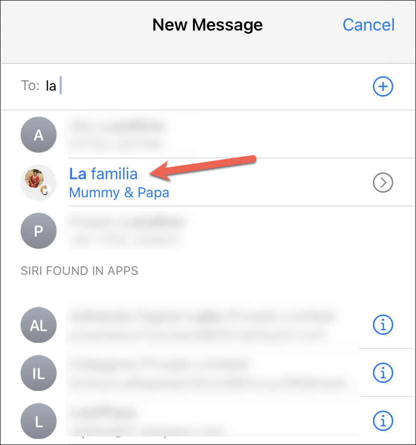 Similarly, to send a text message to the contacts in the list, open the Messages app and start a new message. Then, type the list name in the ‘To’ field and select it from the search results.