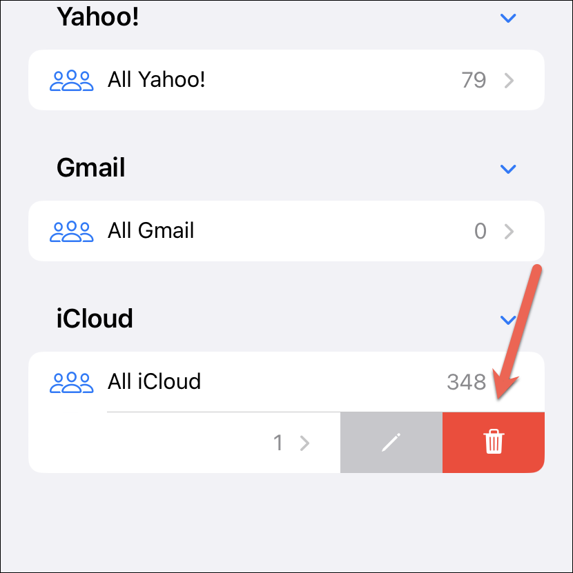 Note: Lists for the linked accounts, i.e., iCloud, Google, etc., cannot be deleted. You can only delete a list you created.