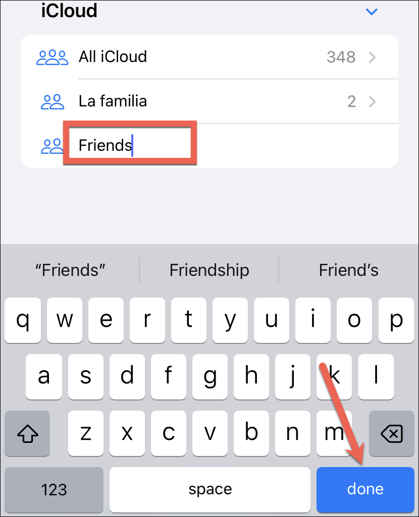 A new list will appear underneath the account you selected. Enter a name for your list. and tap ‘Done’ from the keyboard. An empty list will be created.