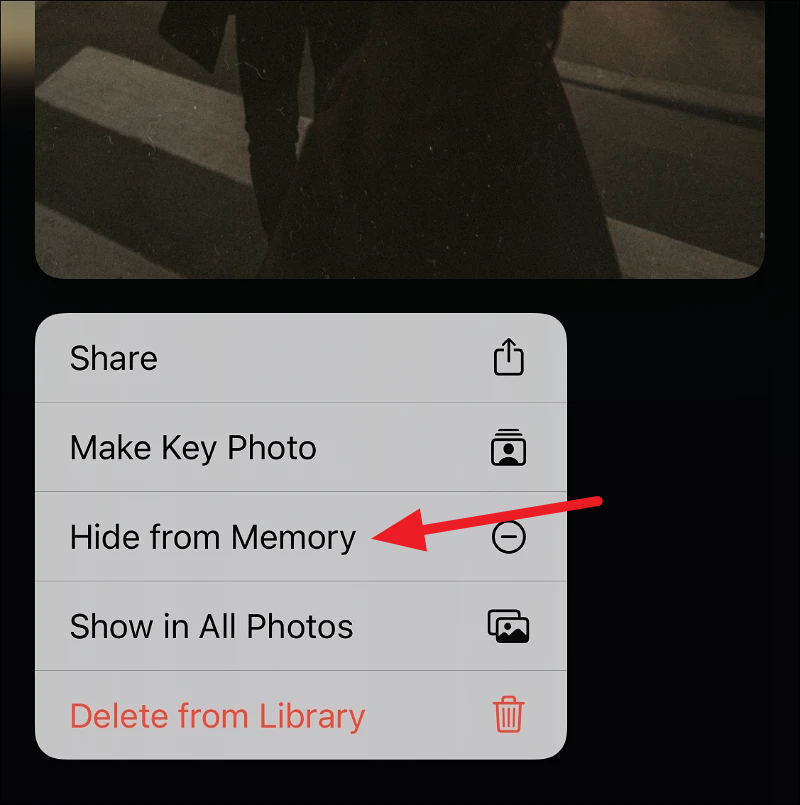 You can also delete a photo from the memory while viewing the memory. When you come across the photo you really hate while you’re watching the memory, deleting it right then is the best choice. Tap the memory to bring up options on the screen.