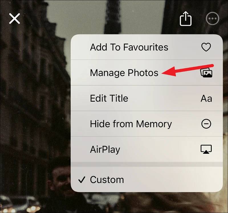 Then, tap ‘Manage Photos’ from the menu that appears.