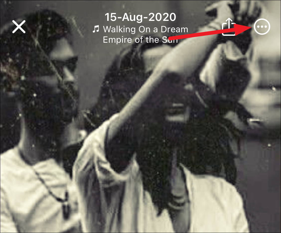 The memory will open and start playing on full screen without any options present. Tap on the screen once to bring up the various tools and options available. Tap the ‘More’ button in the upper-right corner.