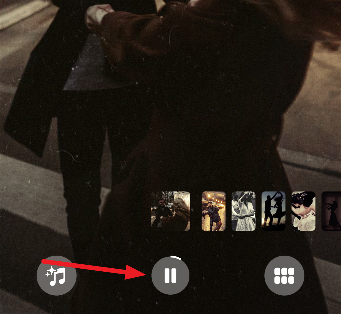 Then, tap the ‘Pause’ button at the bottom of the screen so the memory pauses on the photo you want to delete. The option is only available when you pause the memory.