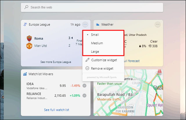 Adjusting the size of widgets can help you view more information at a glance. You can choose from Small, Medium, or Large sizes, but note that resizing only affects the widget's height: