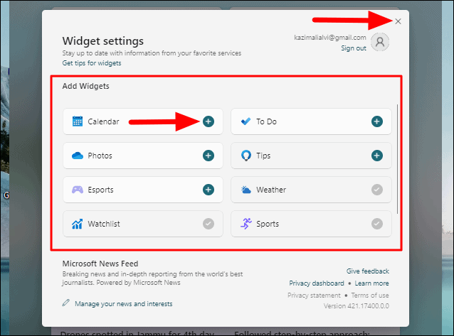 - Open the Widgets panel by clicking the 'Widgets' icon on the taskbar or by pressing Windows + W.