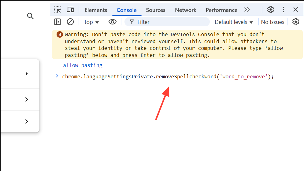 chrome.languageSettingsPrivate.removeSpellcheckWord('word_to_remove');