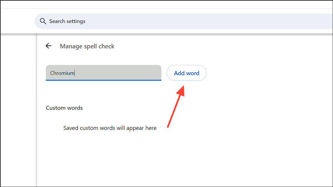 Step 3: To add a new word, enter it in the provided text field and press Enter or click Add word. The word will be included in your custom dictionary and will no longer be flagged as incorrect.