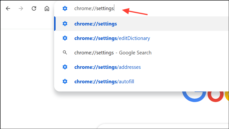 Step 1: Open Chrome and navigate to chrome://settings.