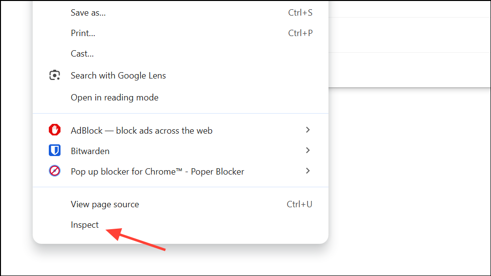 Step 2: Right-click anywhere on the page and choose Inspect to open the Developer Tools panel.
