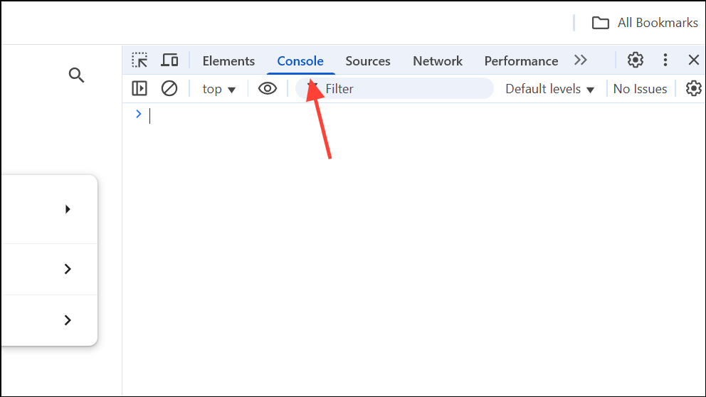 Step 3: Click the Console tab at the top of the Developer Tools panel.