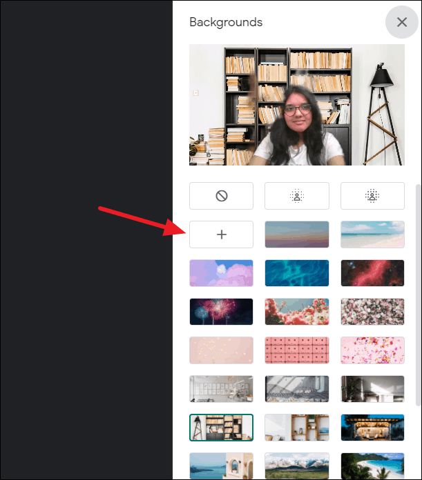 The window to change your backgrounds will open on the right. Click the ‘+’ icon to select a custom image.