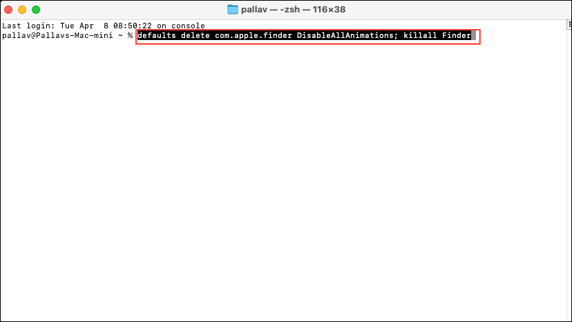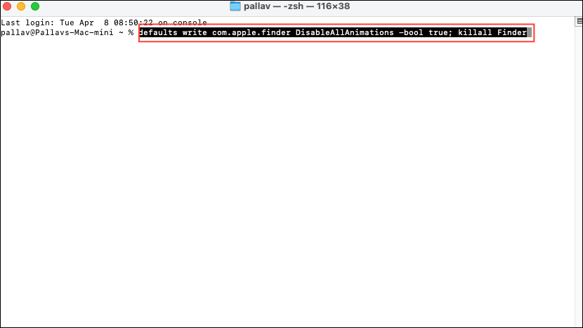 Finder animations, such as window resizing and scrolling effects, can slow down navigation. To disable these animations, open Terminal and run the following command:
