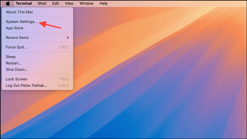 Step 1: Open System Settings by clicking the Apple icon at the top left.