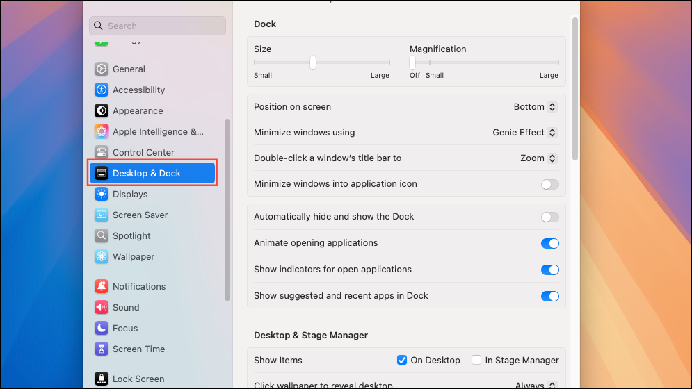 Step 2: Navigate to Desktop & Dock settings.