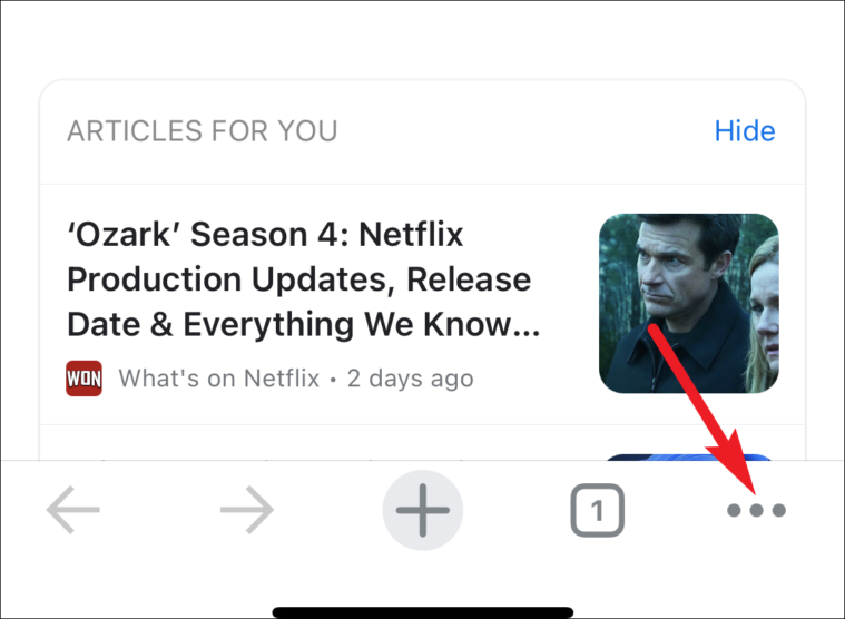Open the Chrome browser on your iPhone. Then, go to the bottom-right corner of the screen and tap the icon for ‘More’ (the three-dot menu).