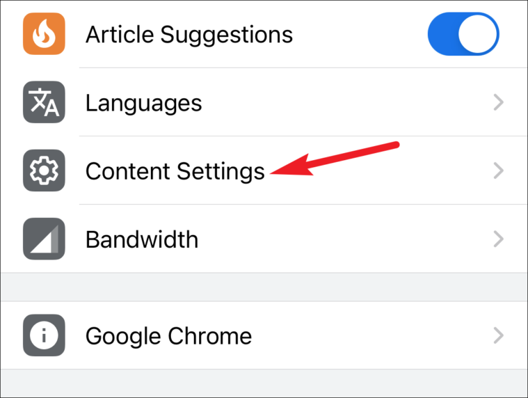 Scroll down a bit in settings and tap ‘Content Settings’.