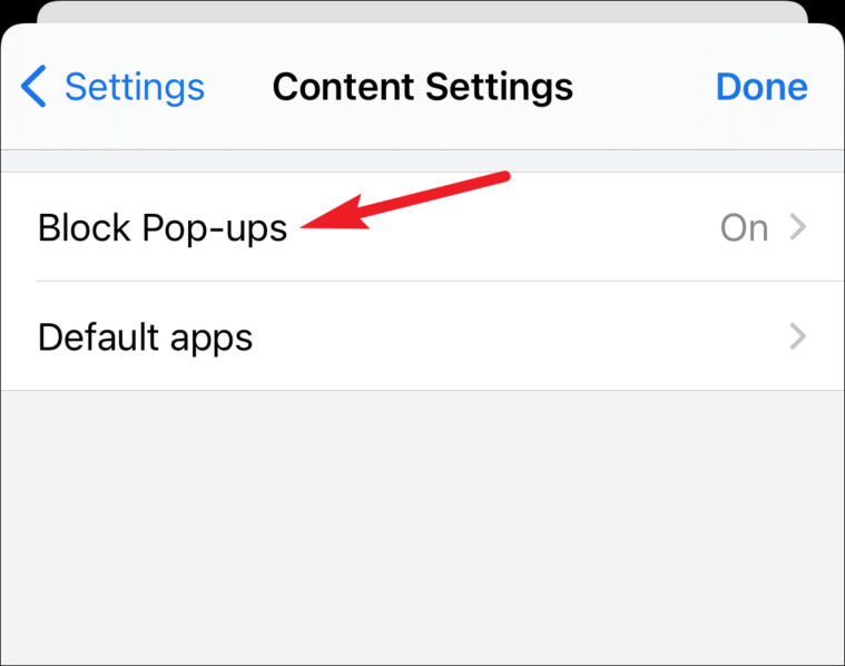 Tap ‘Block Pop-ups’ to open it.