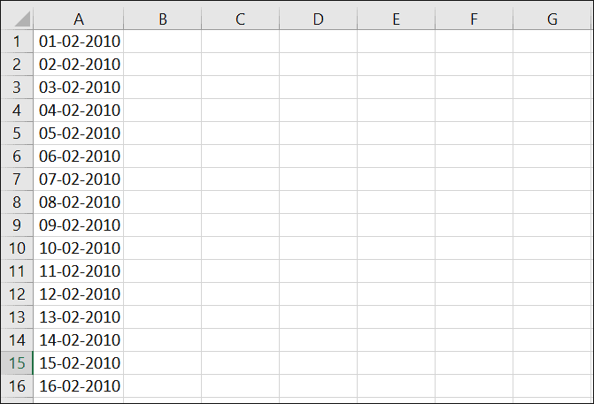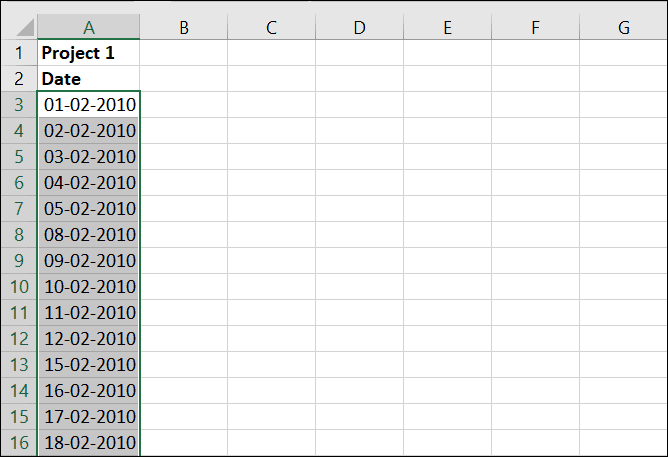 Step 1: Enter the initial date into the first cell of your range, such as 01-02-2010 in cell A1.
