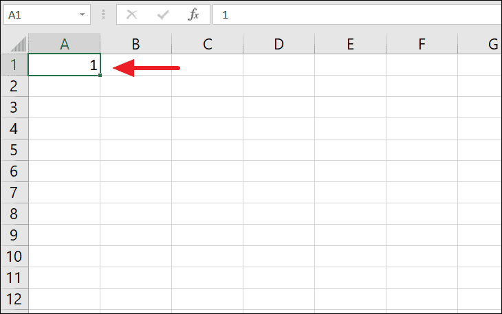 Step 1: Input the starting number in the initial cell of your desired range. For example, type 1 into cell A1.