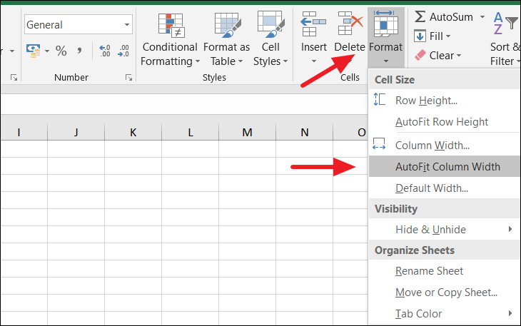 You can also use a keyboard shortcut to access the Autofit Column Width option. With the columns selected, press Alt + H, then O, followed by I.