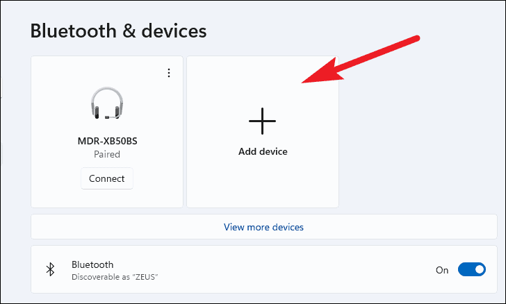 Add devicebutton located at the top of the Bluetooth & devices page. This will open the "Add a device" window.