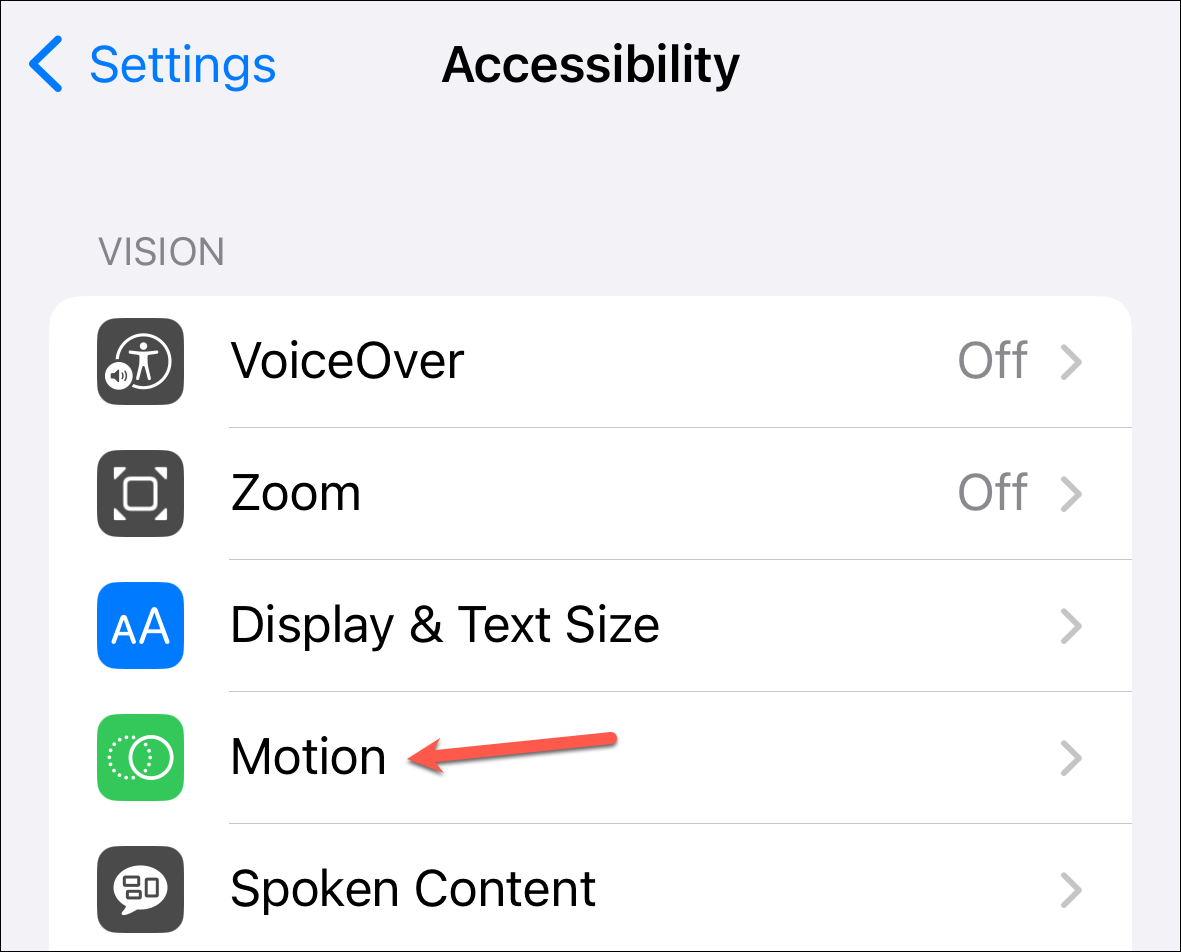 - From the Accessibility settings, navigate to 'Motion'.