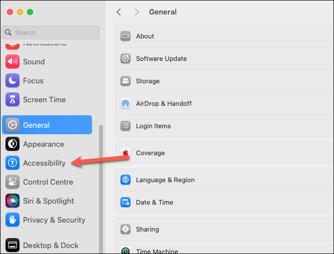 - From the menu on the left, click 'Accessibility'.