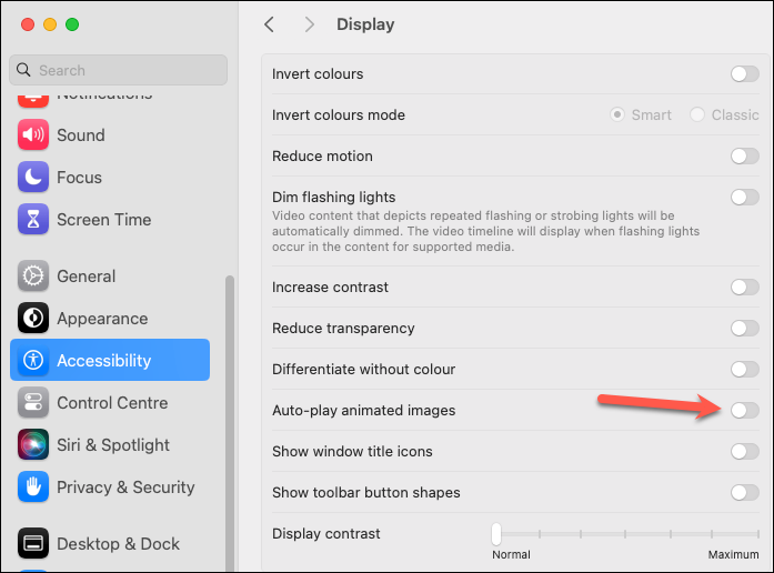 - You will find an option for 'Auto-Play Animated Images'; toggle this switch to the off position.