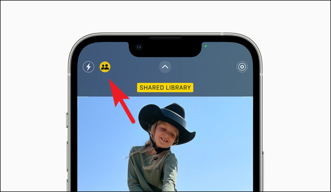 Then, from the Camera screen, tap on the ‘Shared library’ icon to enable it. All clicked pictures will now be shared with your family members.