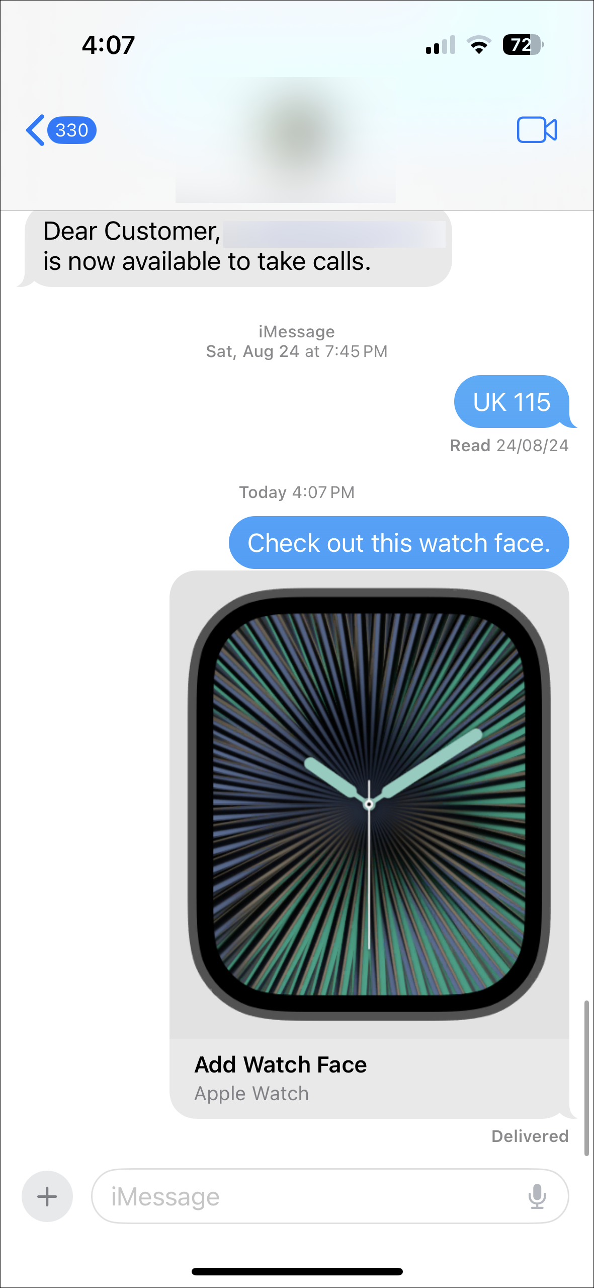 watchOS has a handy feature that allows users to share their Watch Faces via Messages or Mail directly. This lets users easily share personalized Watch Faces with each other. Only sharing the Watch Face does not cause the Messages app to crash, though.
