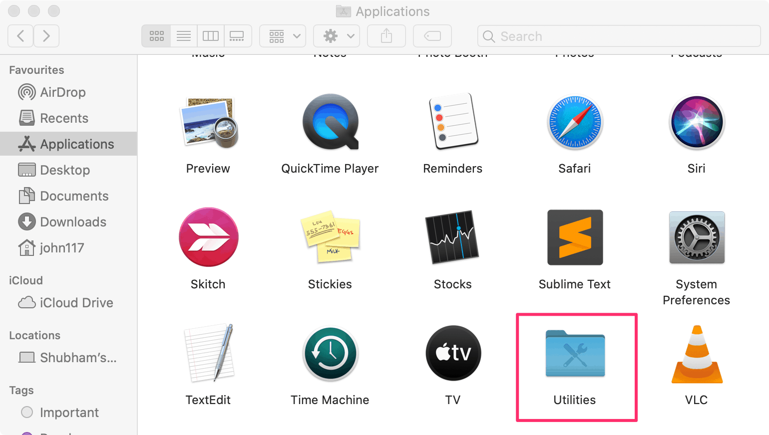 To restore a Time Machine backup, connect the backup drive to the Mac, then go to Finder » Applications, and select the ‘Utilities’ folder.