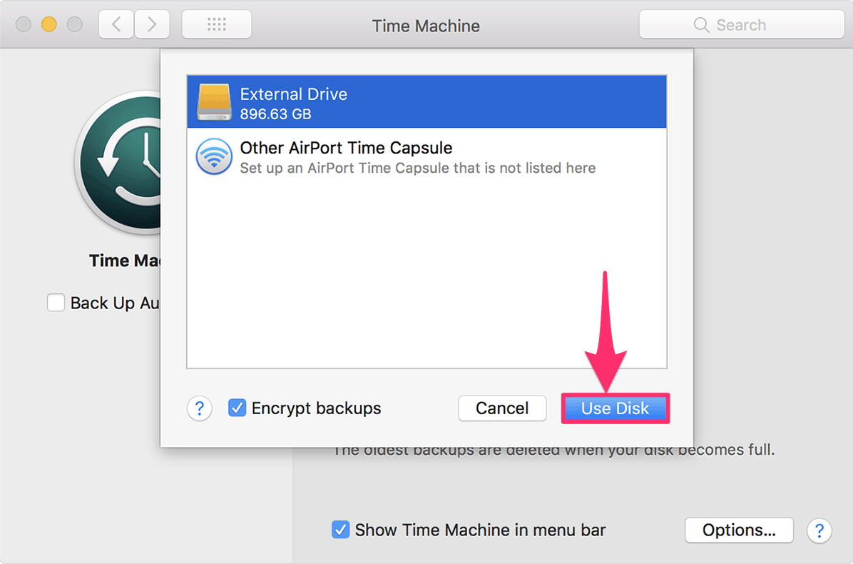 Now you need to select your external drive from the list of available disks and then click on the ‘Use Disk’ button.