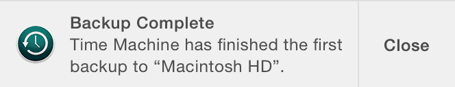 Upon successful completion of your first backup, you will get the following prompt.