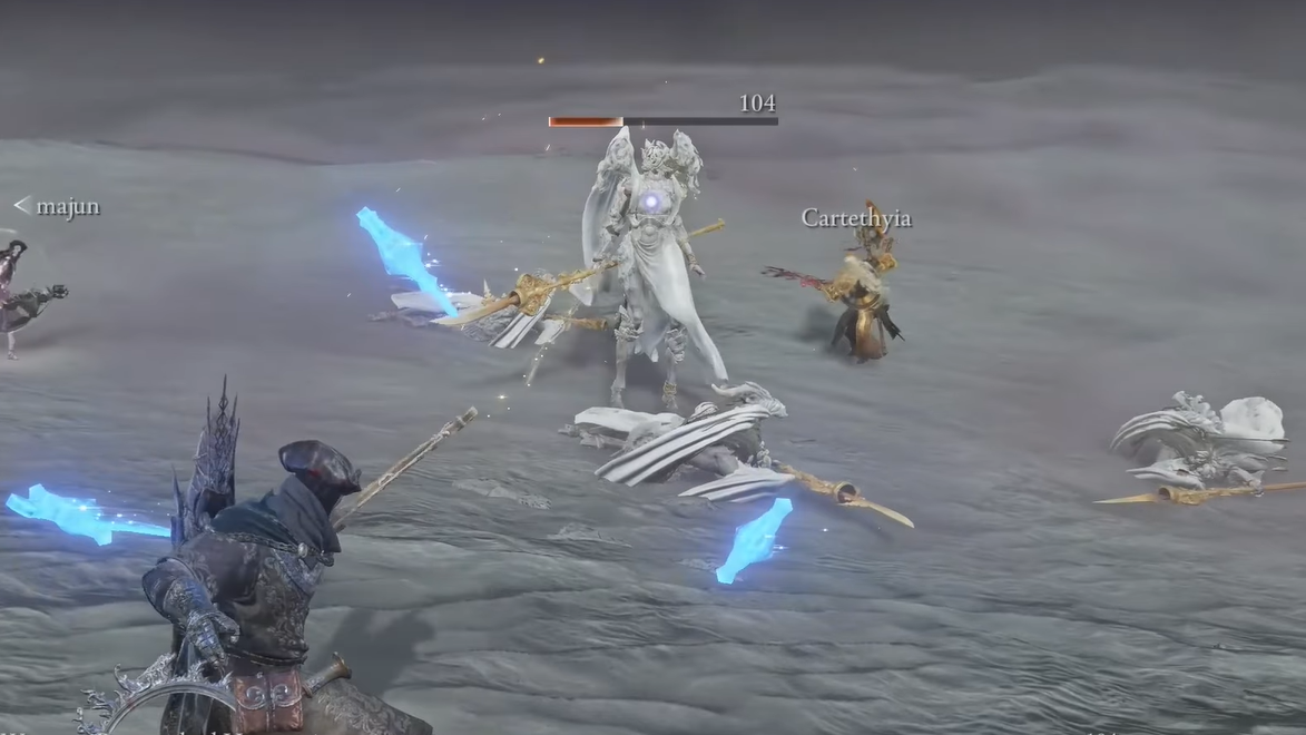 More flasks are unusually valuable in this fight. Area attacks and blind‑angle spears will connect occasionally, especially in co‑op, and having at least two extra flasks from churches keeps your team alive long enough to see and learn every pattern.