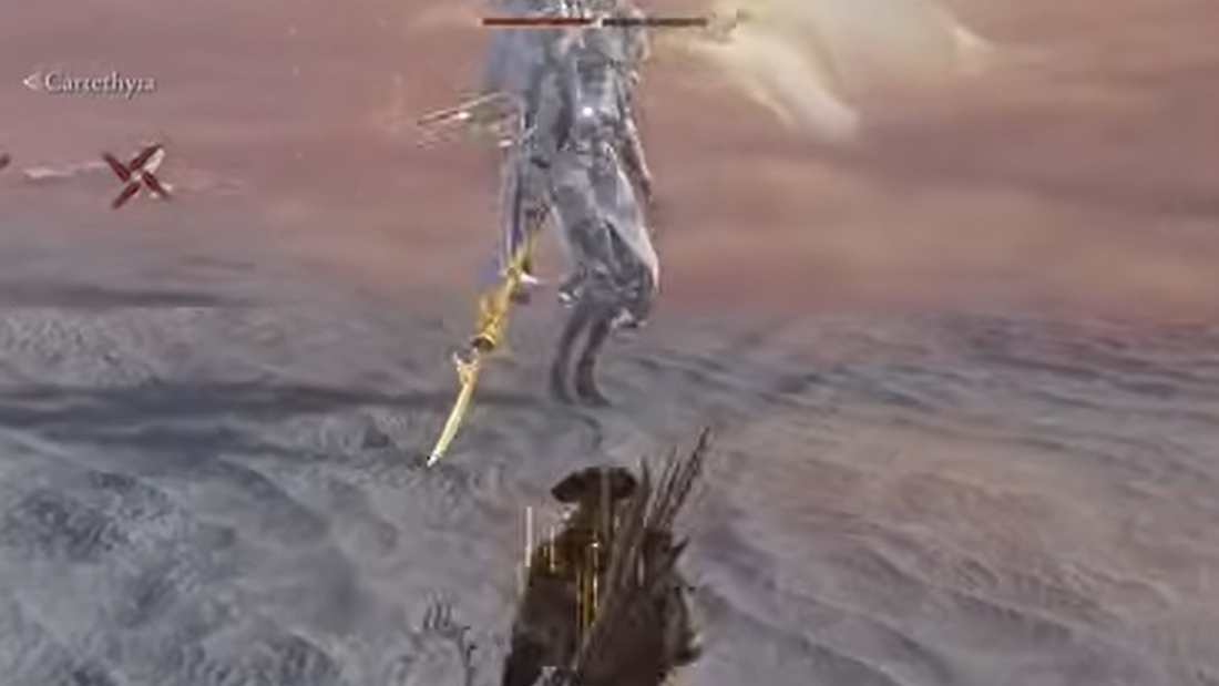 - Enhanced thrust chain: A longer version of the basic thrust combo, sometimes ending in a leaping stab. Use the same approach as in Phase 1: roll into the first charge, get behind her, and circle while she stabs air. The last leap lacks the slam shockwave and is very punishable if you time one clean roll on landing.