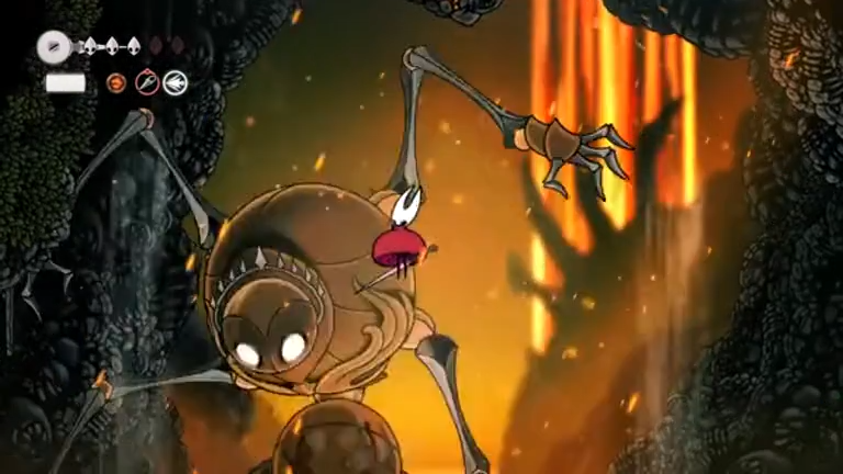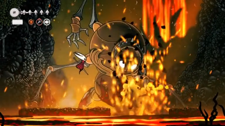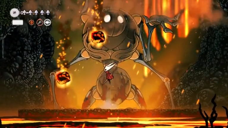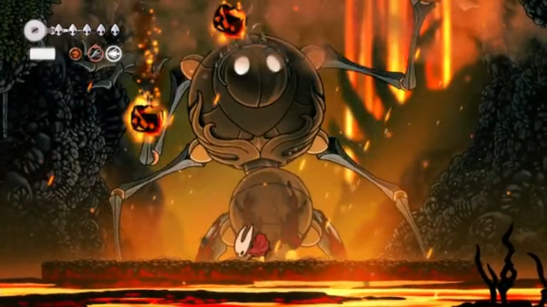 Once you’ve knocked Fourth Chorus down twice, air vents appear on both sides that let you glide to the ceiling. Hitting the two glowing molten rocks on the ceiling causes a large stalactite to drop onto the boss for an instant kill.