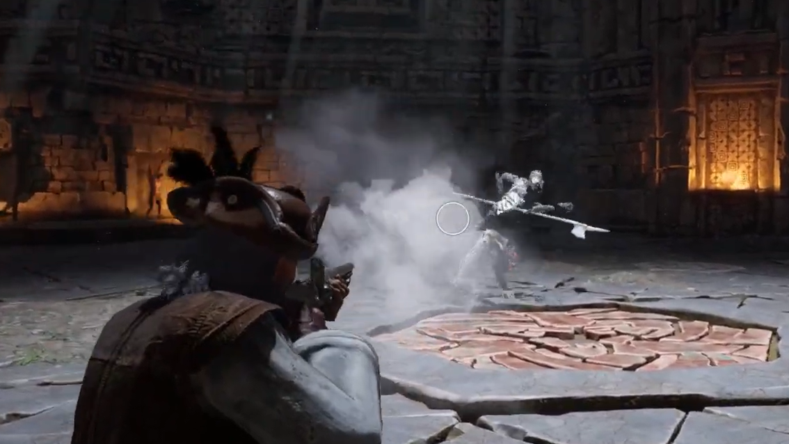 Dodging is safer than parrying for most players. While parries do work on his melee swings, the timing is tight, and a missed parry means eating the full combo. Sidestepping or rolling to the side handles the majority of his kit, especially the Halberd Charge and Spectral Shot.
