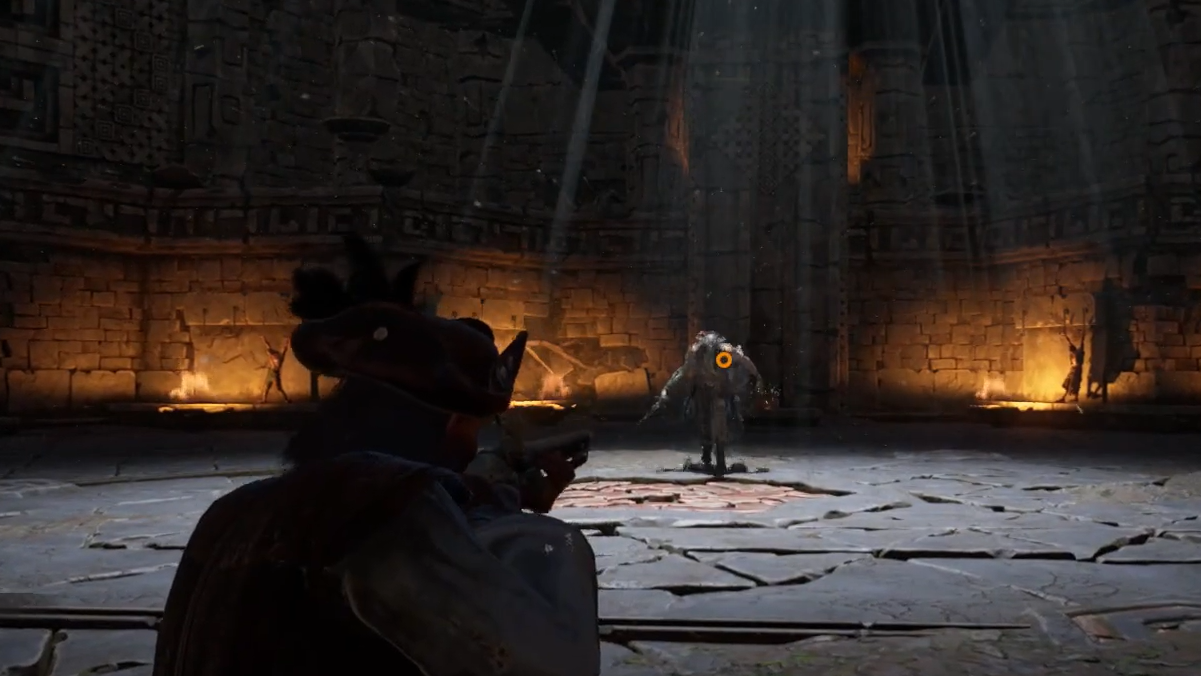 | Spectral Shot (Spirit Cannon) | Hands glows white; a ghost emerges and perches on his shoulder, raising a pistol | The ghost fires a single bullet at your position | Wait for the ghost to point the pistol at you, then dodge sideways. Sprinting in a circle around the boss also causes the shot to miss. |