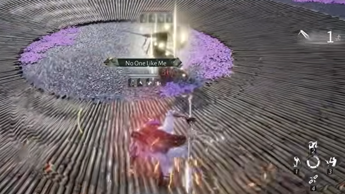 - Sword Whip — a fast, tricky sweep where the arm makes a circular motion above the boss's head. The timing is tight, so watch the arm's arc rather than the blade tip.